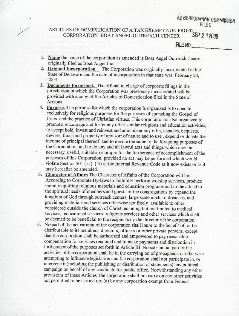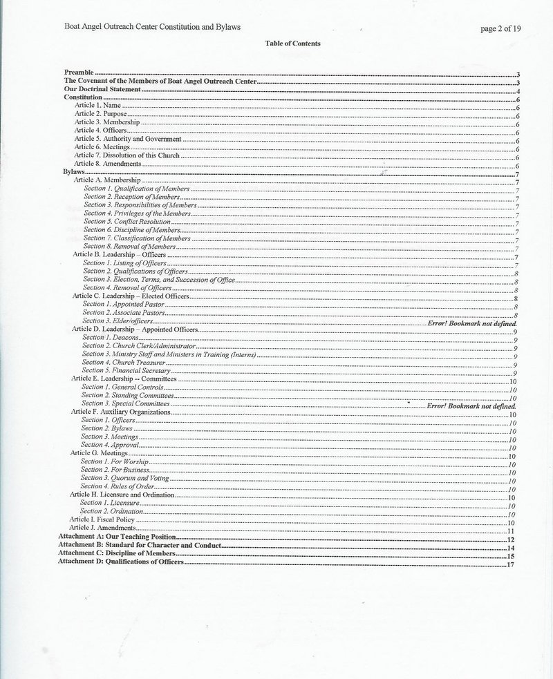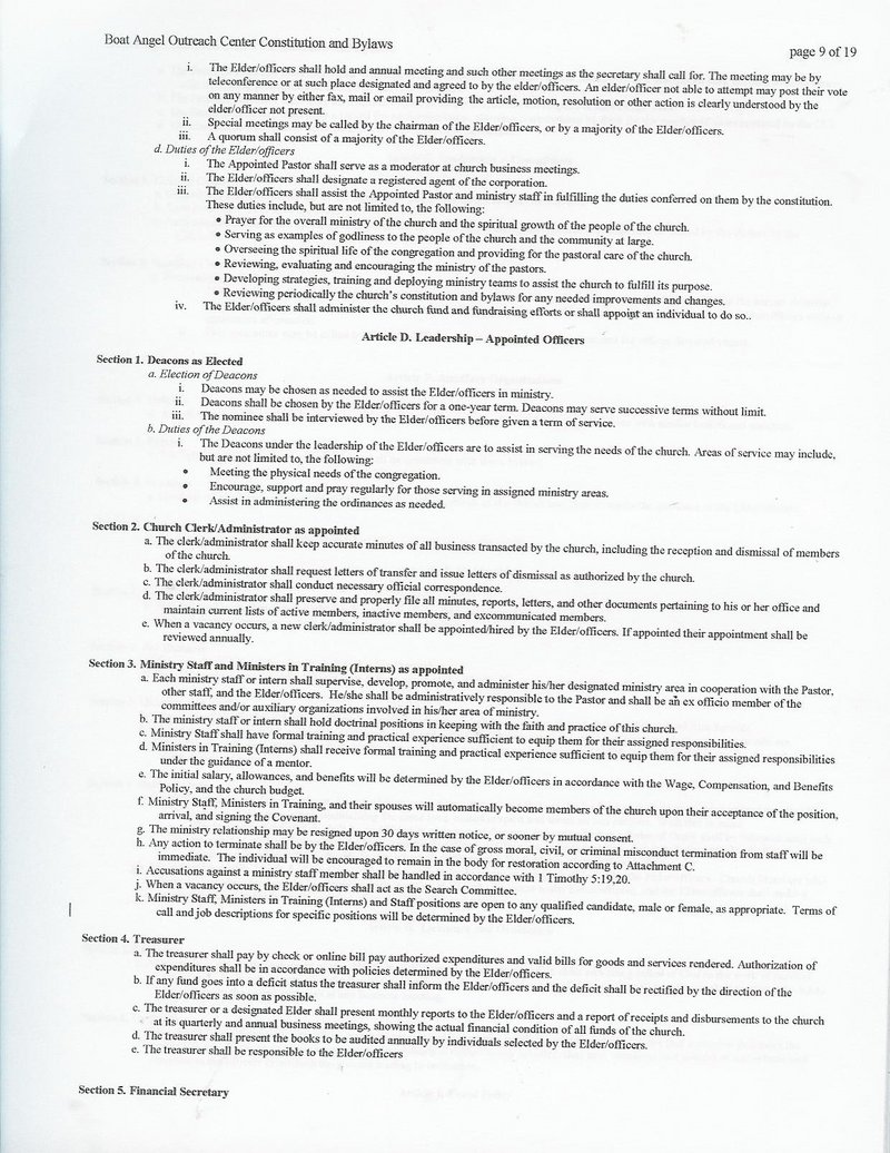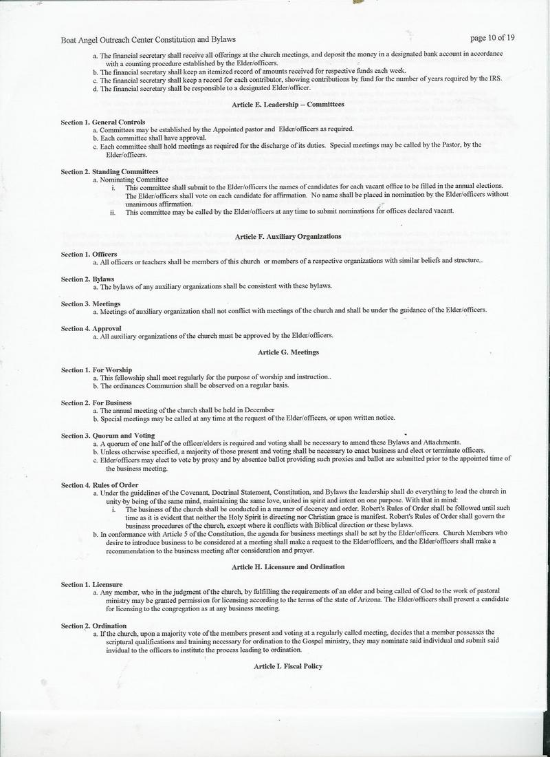 BoatAngel Outreach Center Bylaws & Constitution